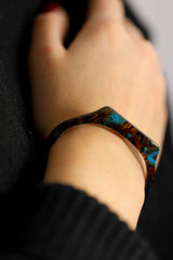 La Menotte Ocean Blue en Acétate provient d'une matière utilisée principalement pour les lunettes ou les anciens peignes à cheveux. Nous souhaitons proposer des déclinaisons à travers une gamme colorée et originale.
