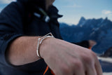 La menotte ALPI, design unique allégé et plus discret, reprend la ligne d'horizon du massif du Mont Blanc dans les Alpes Française. Un diamant à Chamonix et un autre au sommet du Mont Blanc.